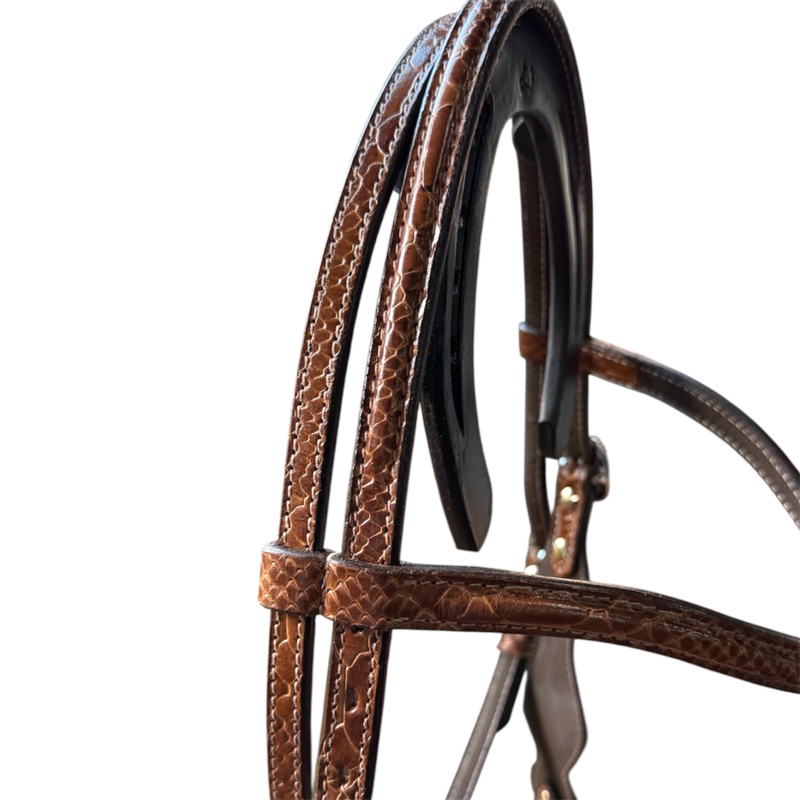 Headstall with browband Snake print Cognac