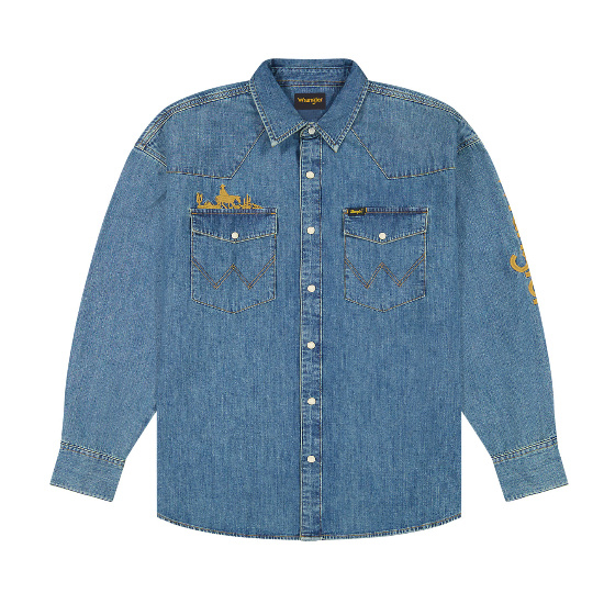 Wrangler Western ShirtThis long-sleeved denim Western shirt has its roots in the American West and comes with a regular fit and two chest pockets with snap closure for an authentic look.